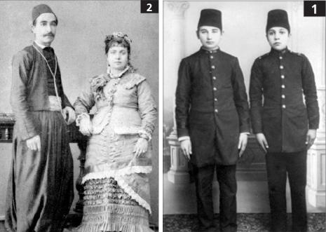 الصورة رقم (1) التقطها صباح وتوالييه في مدرسة عليا في بغداد، تتطابق مع صورة سابقة التقطت في مدرسة مدينة بورصة لطالبين من دمشق. الطلاب يظهرون دوماً على نحو مزدوج، ولباسهم مدرسي يوحي بتطلّعهم إلى أن يصبحوا أفندية. نظرتهم مصوبة دوماً إلى الأمام، ويظهر جسمهما كاملاً، من الطربوش إلى الحذاء، ويقفان في حالة انضباط. بمقارنة الصورة المرفقة والأخرى الواردة في المؤلف، لا تظهر أي تباينات إثنية أو مذهبية أو قبلية. الطلاب جميعهم متطابقو المظهر على نحو متكامل، وهم جزء من نتاج التعليم العثماني والبنية التحتية والنتاج المعرفي العثماني.